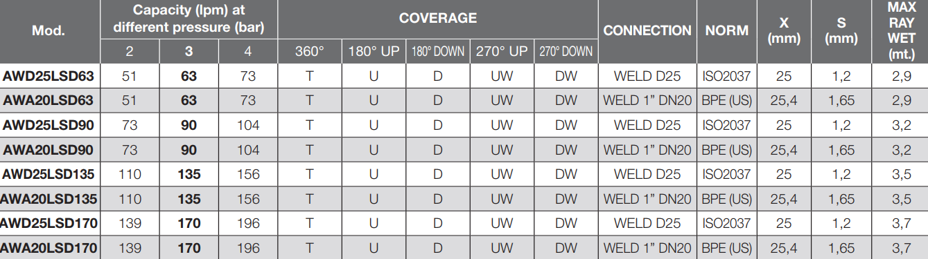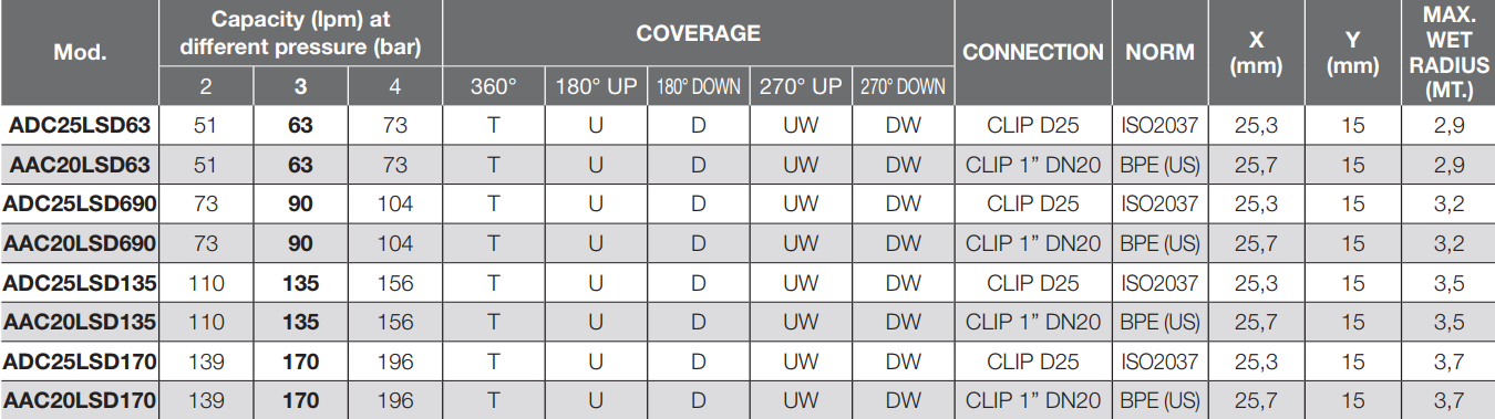 Tiene las mismas características que el modelo con rosca en la página anterior, pero con posibles conexiones de clips y soldaduras de acuerdo con los estándares europeos (ISO2037) y estadounidenses (BPE-EE. UU.).