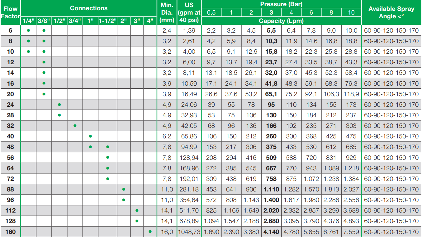 La nouvelle buse hydraulique B9S applique un jet à cône plein même à basse pression (0,5 bar et plus). La buse ne nécessite pas d’entretien et la structure elle-même empêche le colmatage. Le débit de ces buses peut être particulièrement élevé et celles-ci peuvent même être utilisées avec de l’eau qui n’est pas très propre.