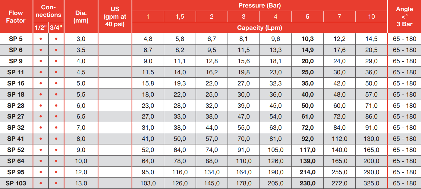 Questo ugello è dotato di un deflettore esterno, che scarica l’acqua sotto forma di cono a media velocità.