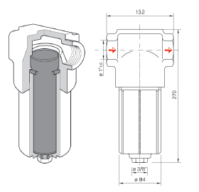 struttura interna, il liquido da filtrare è costretto ad assumere un movimento vorticoso che consente di distribuire le impurità in modo uniforme su tutto l’elemento filtrante portando le particelle solide sul fondo della coppa, garantendo così minori interventi di manutenzione.