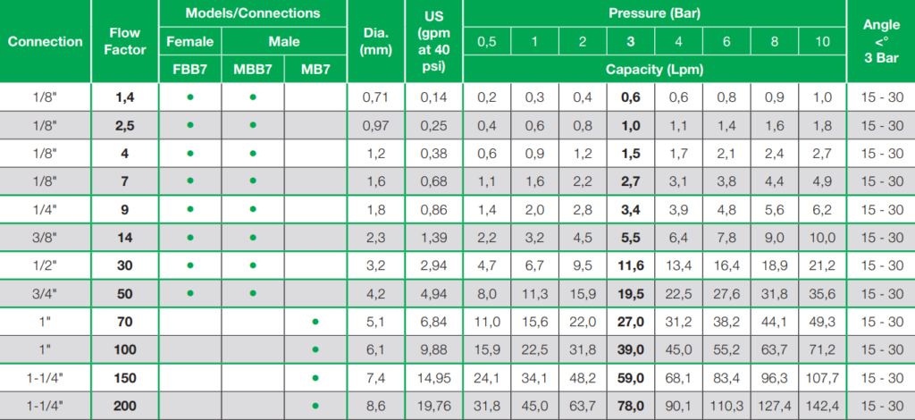 FBB7 :1/8 , 1/4 , 3/8 , 1/2 , 3/4
