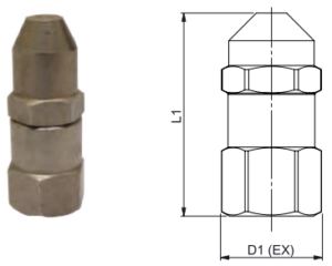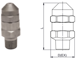 Ugello con alte forze di impatto, angoli di spruzzo di 15º e 30º